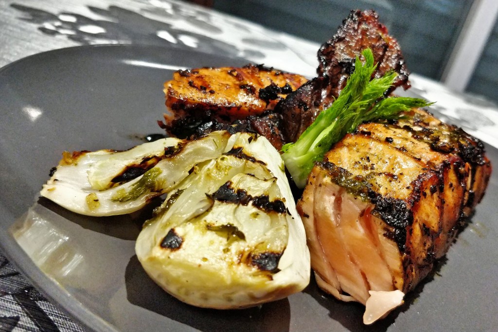 אני כאן הכנתי אותו על הפלאנצ'ה צריבה חזקה וטובה עם תערובת תבלינים איכותית שהכנתי עם מכתש ועלי.