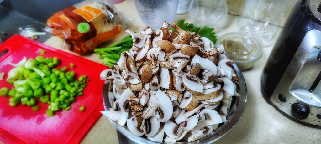 נקצוץ את כל הפטריות הטריות גס יחסי וניטן להן טיגון.